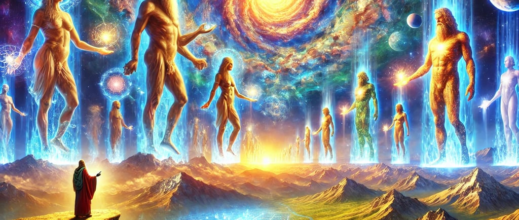 As the giants thrived, they began to create new versions of themselves. Over time, these copies became smaller, a natural evolution as their energy dispersed. Eventually, the giants gave birth to humans by merging their divine genetics with the beings of the Earth. This union created humanity’s unique lineage—a blend of divine and earthly essence.