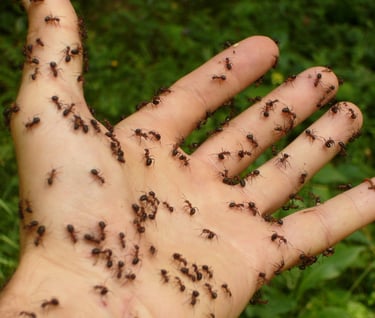 Kusiainen kohtaa ihmisen tai ihminen lähestyy muurahaisten kekoa, niin muurahainen on vähän että ’’WTF’’ ja puolustaa itseään, koska se on luonnollinen tapa toimia yleensä kun ’’säikähtää’’ tai ei tiedä kuinka toimia. ’’Hyökkäys on paras puolustus’’.